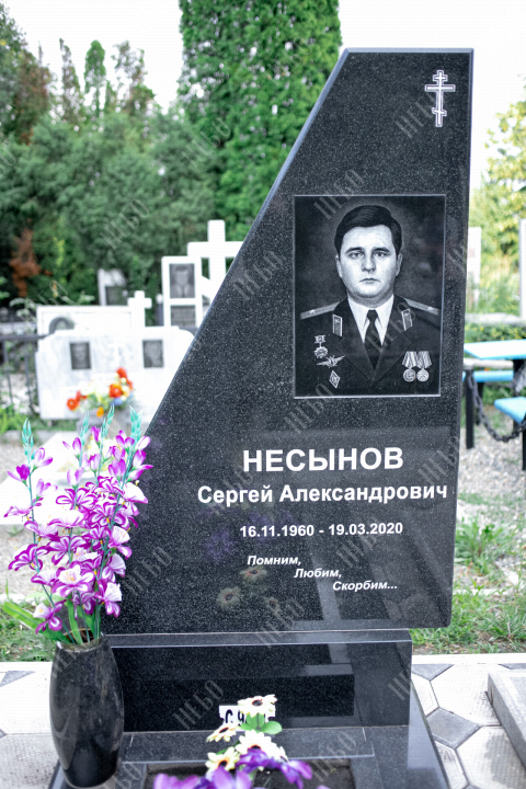 Для изготовления памятника использован гранит карельский габбро-диабаз. Это горная порода, отличающаяся прочностью и повышенной износостойкостью. Карельский габбро-диабаз устойчив к влаге и перепадам температур. Его плотность выше, чем у мрамора, поэтому именно его использовали при воздвижении вековых колонн исторических зданий. Гранитный памятник габбро-диабаз не требует особого ухода, обладает насыщенным черным цветом, что делает внешний вид памятника благородным и лаконичным.