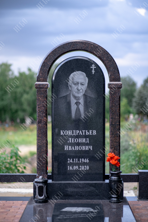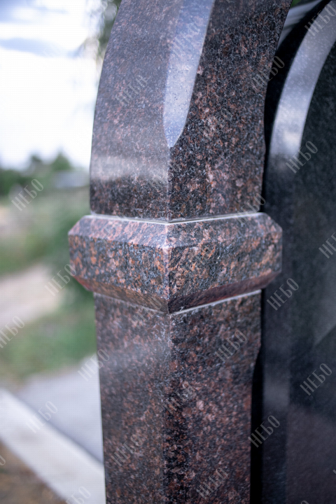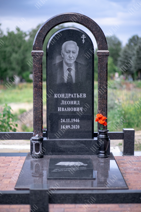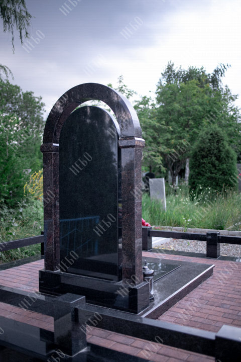 Памятник арка выполнен в классических темных оттенках, имеет закрытое надгробие и вазу у основания стелы. Монумент в виде арки придает ритуальному изделию эксклюзивность, такой памятник всегда обратит на себя внимание. Арочные своды, обрамляющие стелу, символизируют небесный свод. Такая форма памятника создаст атмосферу безмятежности и поможет достойно выразить дань уважения погребенному. Размер и форма памятника проработаны специалистами с учетом нагрузки и эстетического восприятия ритуального изделия. Такой подход исключает возможные искажения и деформации ритуального изделия.